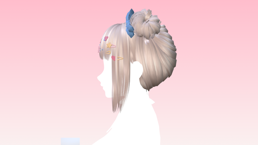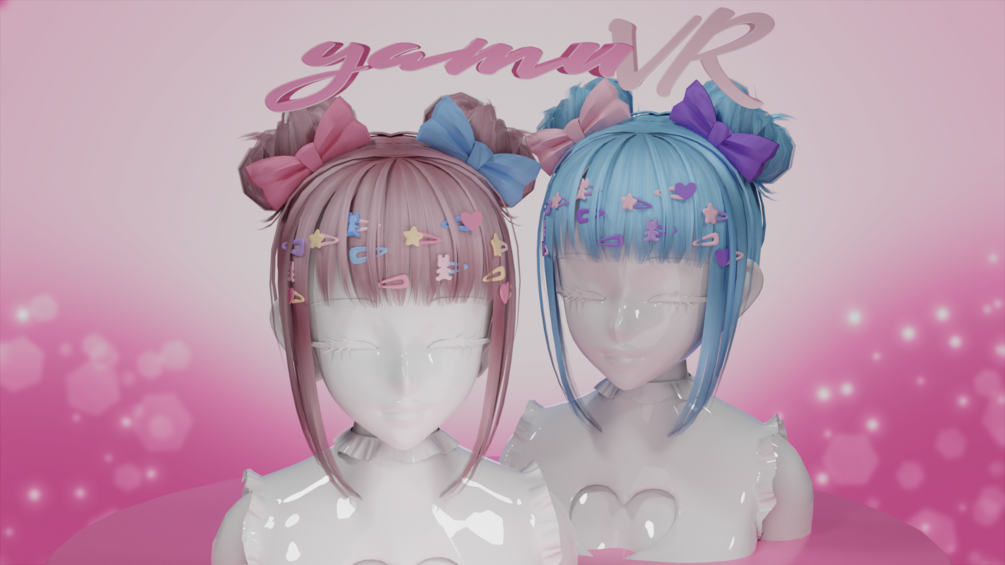 Double buns with bows and clips made in Blender by me! Modeled and weight painted to Amelia AnimeHead (Head is not included) But should work with any head :)