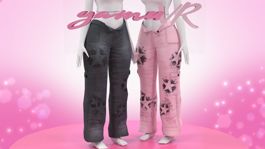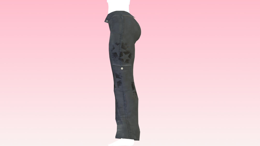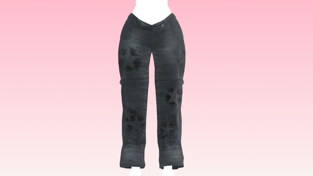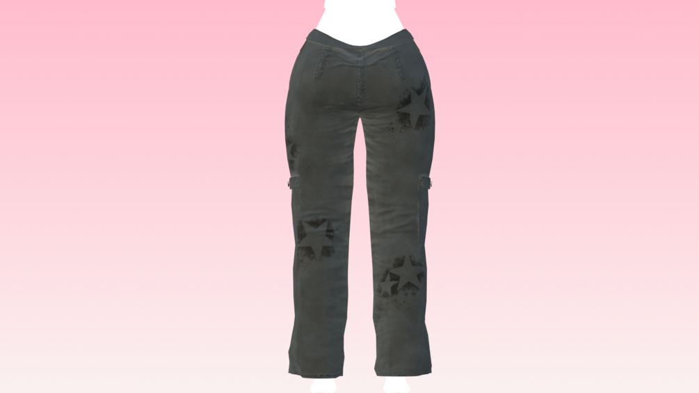 Baggy cargo pants with star spray paint motifs! made in Marvelous Designer/Blender/Substance Painter by me! Modeled and weight painted to Zinfit (Not included)