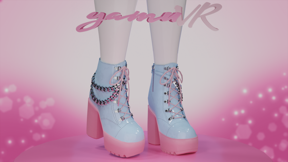 Heeled booties with chain details made in Blender/Substance Painter by me! Rigged and modeled to Zinfit Heeled Foot Base (Not Included) There's 2 versions included, 1 with rigged laces and 1 without!