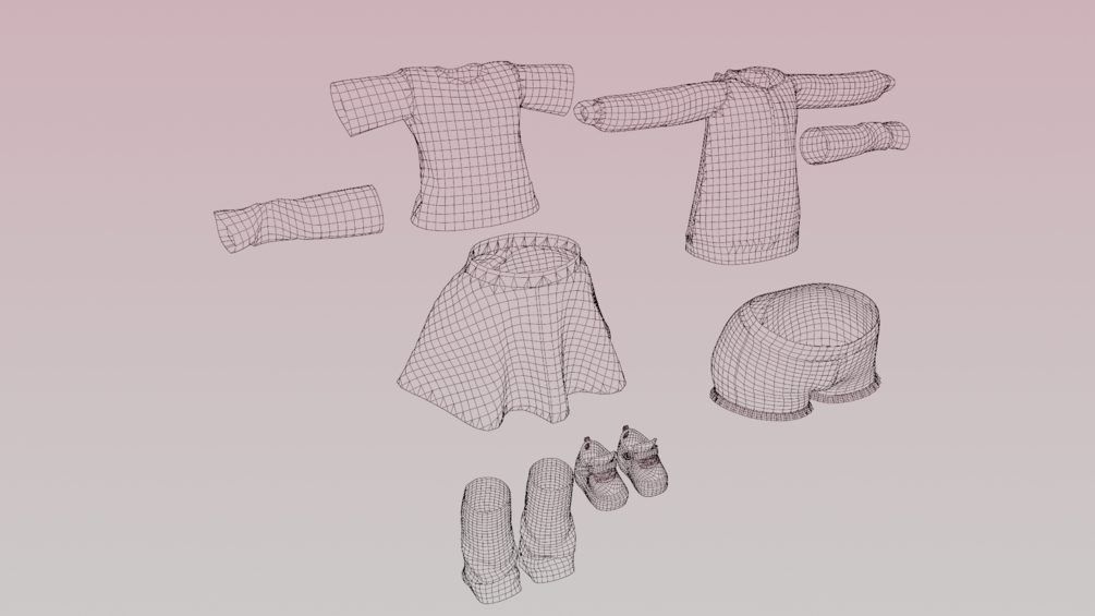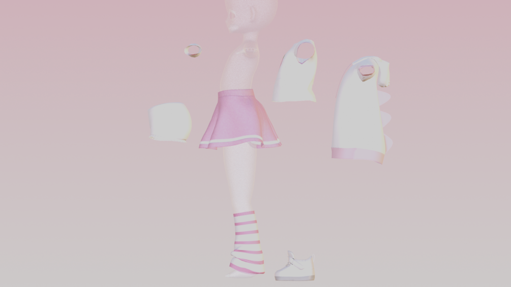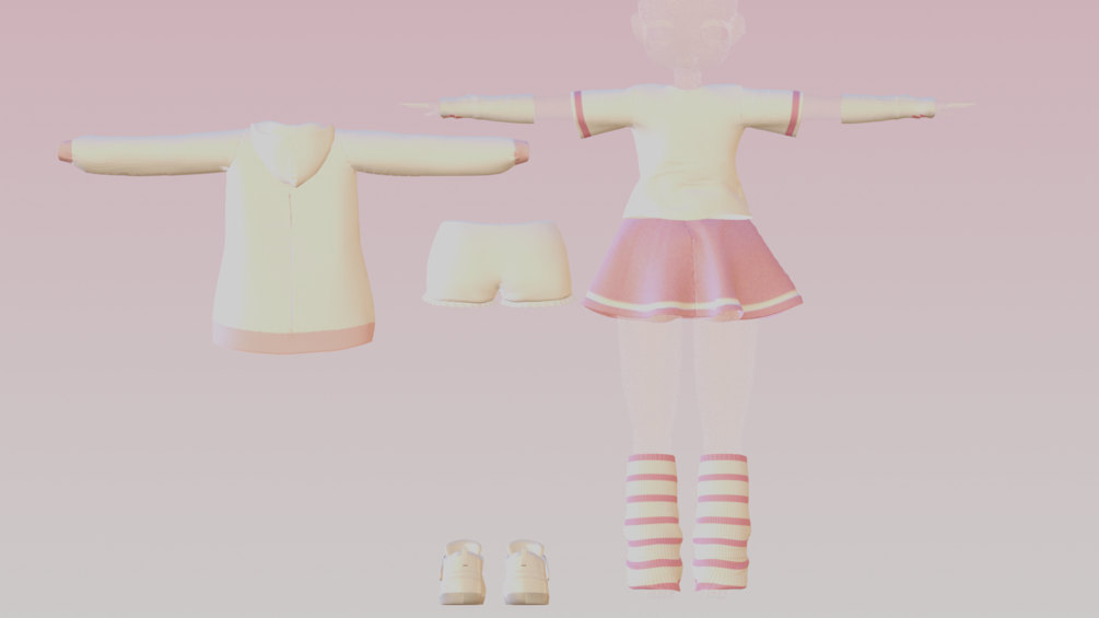 Chibi outfit (Top, Dino Hoodie, ArmWarmers, Skirt, Shorts, LegWarmers, Shoes) made in Marvelous Designer/Blender/Substance Painter by me! Rigged and modeled to Nyakoh's Chibi Base and Koragira's 2nd Chibi base (Currently in her wishers chat) (Not Included)