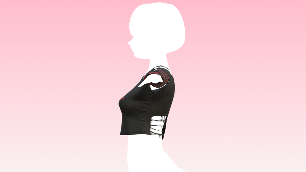 Long and short sleved layer top with rips and safety pin details! made in Marvelous Designer/Blender/Substance Painter by me! Modeled and weight painted to Zinfit (Not included)