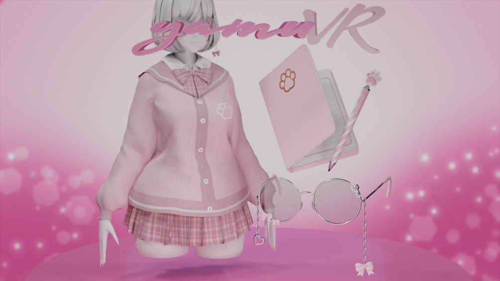 !!Please note!! This is just the FBX+Textures, I have left in my settings for the physbones (Skirt, Bow, Glasses, Notebook) for you to follow if you'd like however, there's no unity package for this.
