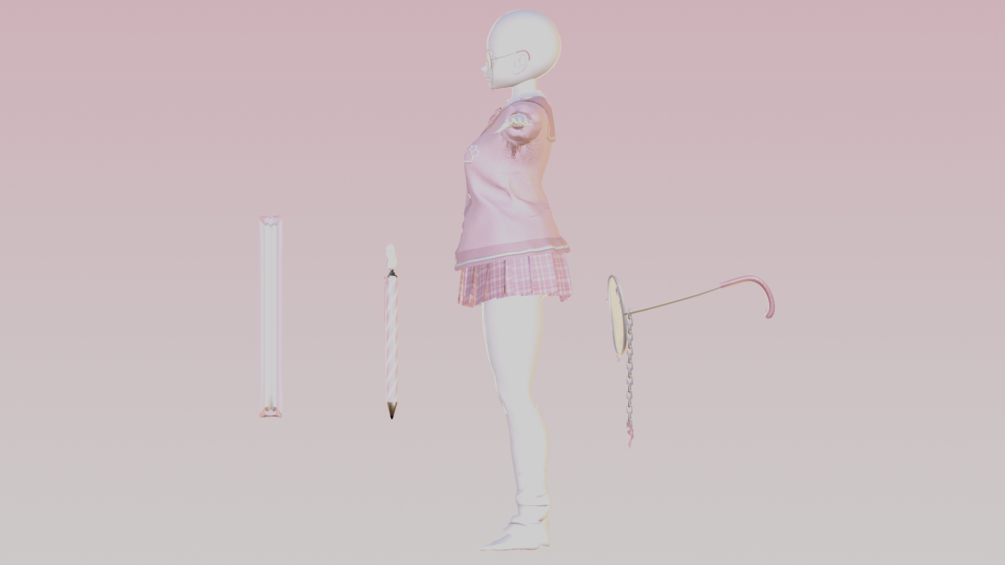 School set (Glasses, Notebook, Pen, Shirt, Tie, Cardigan, Skirt, Legwarmers) made in Marvelous Designer/Blender/Substance Painter by me! Fully rigged and modeled to Zinpia Fit Female base and Starlynn's Starlight Anime Head (Not included)