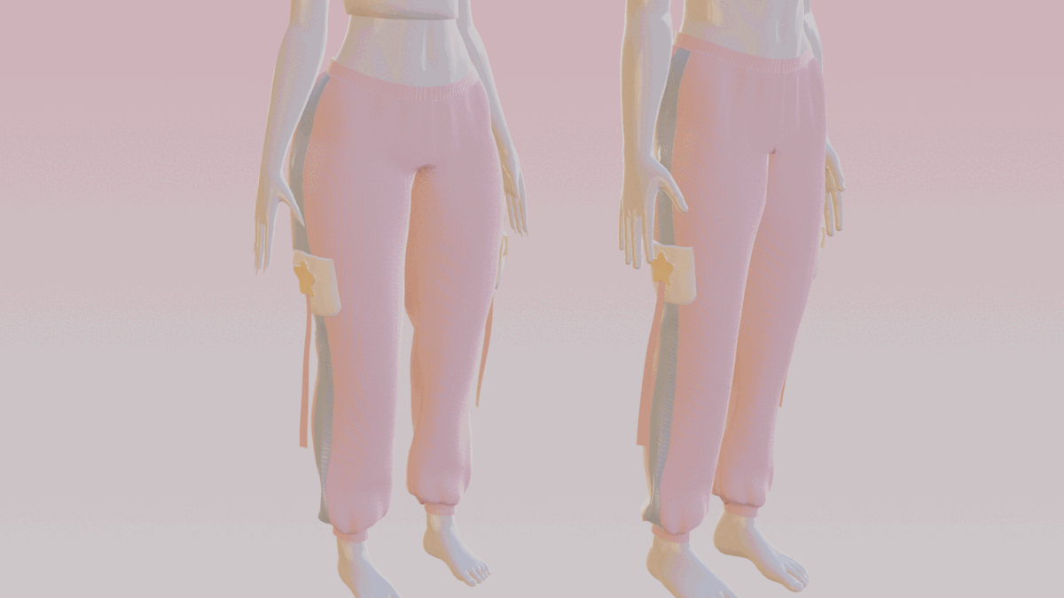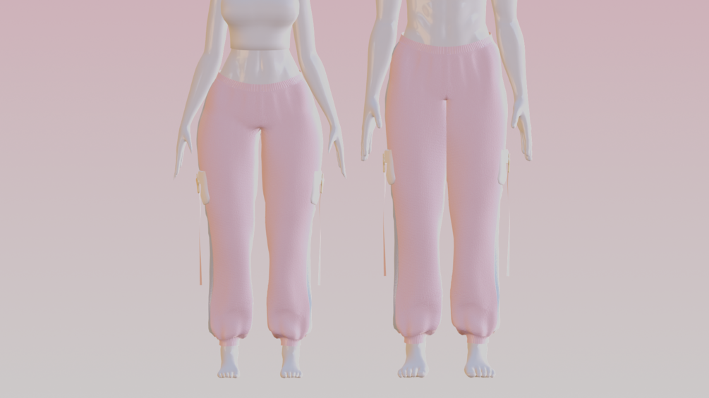 There's and extra blendshape to roll up one of the legs if you'd like :)