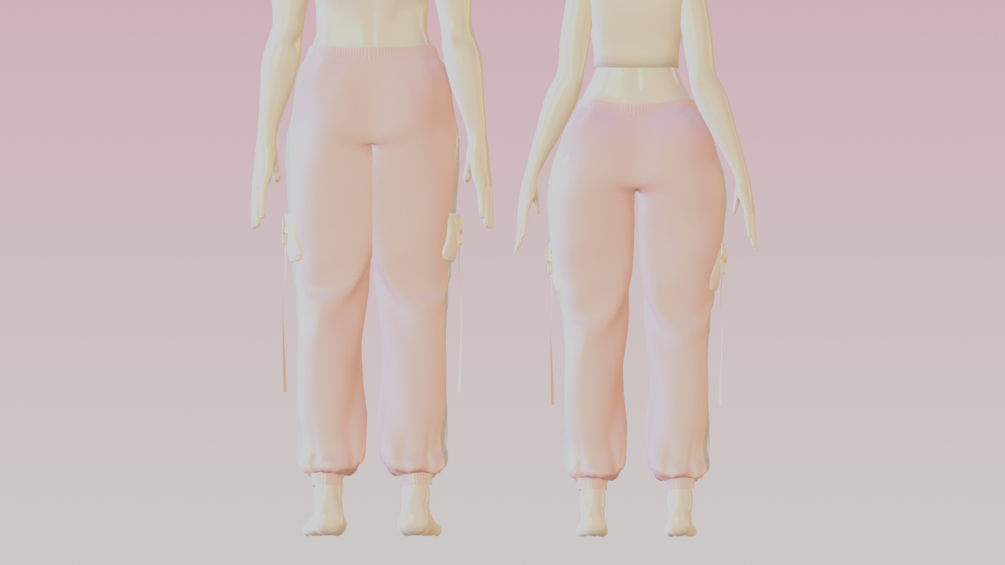 There's and extra blendshape to roll up one of the legs if you'd like :)