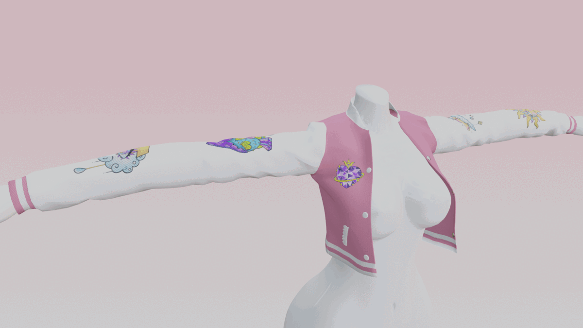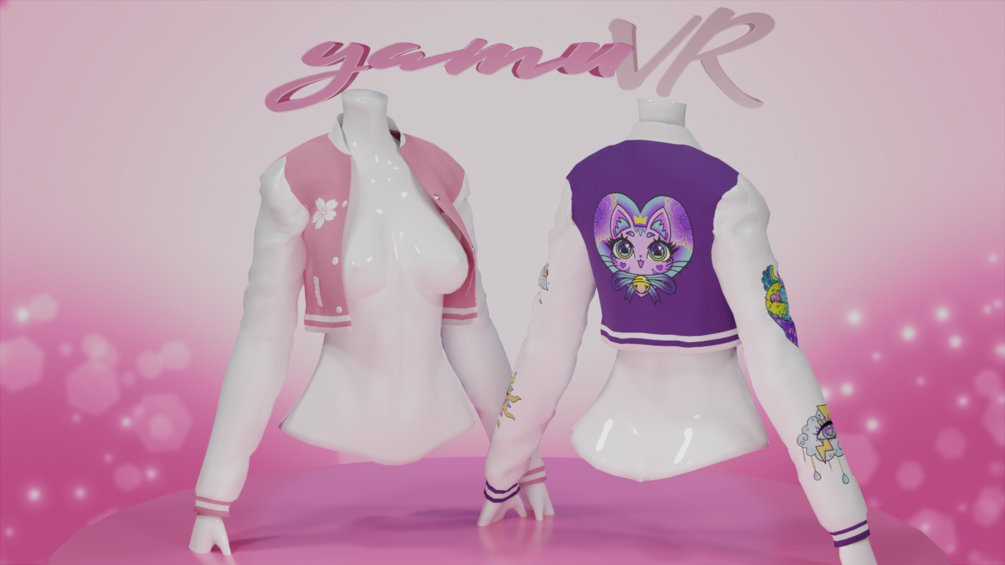 Super cute cropped varsity jacket, without and with adorable patches by Mowster#9962