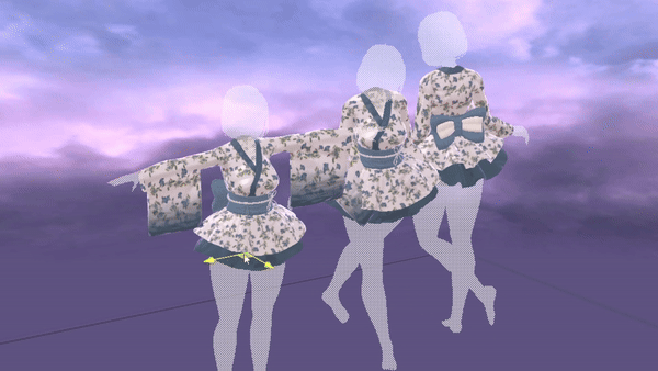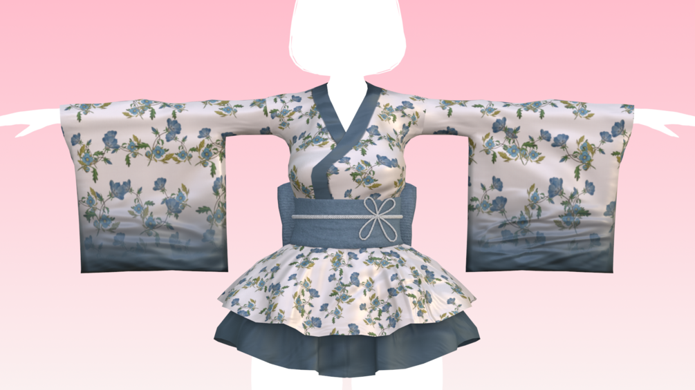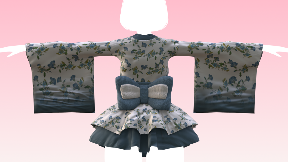 Flowy yukata with long sleeves and a big bow! made in Marvelous Designer/Blender/Substance Painter by me! Modeled and weight painted to Zinfit (Not included)