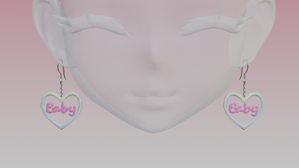 Heart shaped earrings with baby written in the middle~