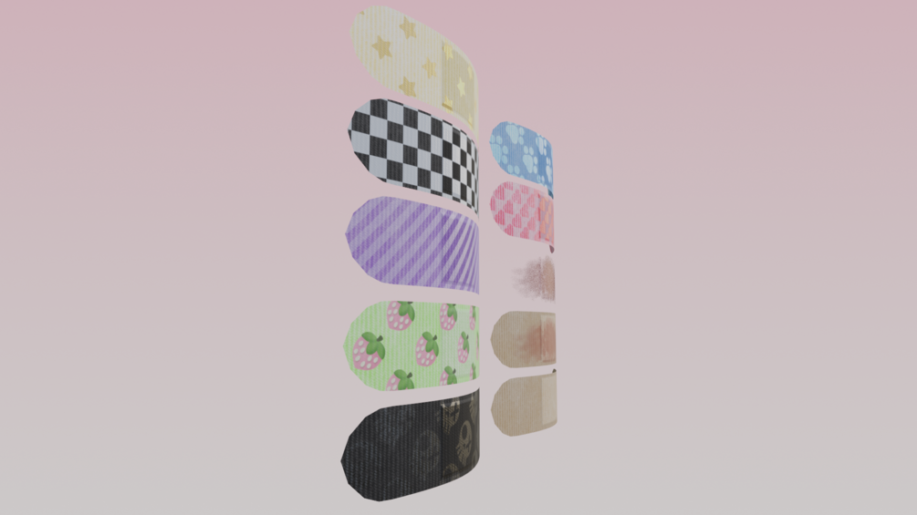 ➤1 Material per band-aid. (1K PBR textures, 9 Colour Options! and one extra Bloody Mask)