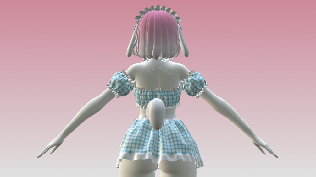 Finished this sanrio inspired maid dress today, made in Marvelous Designer and Blender by me! modeled and weight painted to Panda's flat foot base (base is not included) 14 different textures to chose from, pick between plain and tartan pattern <3