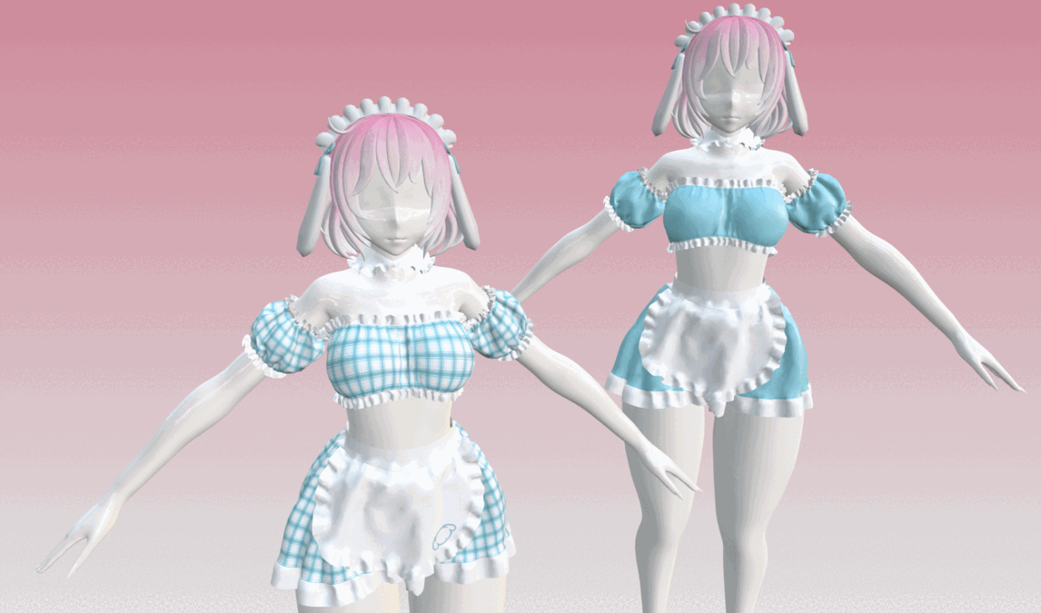 Finished this sanrio inspired maid dress today, made in Marvelous Designer and Blender by me! modeled and weight painted to Panda's flat foot base (base is not included) 14 different textures to chose from, pick between plain and tartan pattern <3